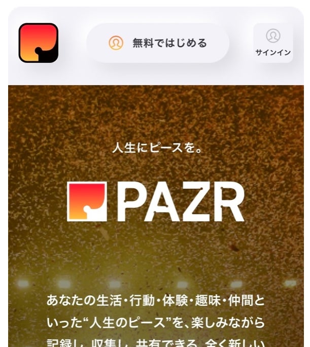 「PAZR」は、あなたの生活・行動・体験・趣味・仲間といった“人生のピース”を楽しみながら記録し、収集し、共有できる、全く新しいライフログSNS。あなたを構成する要素をピース化して記録するジャーナル機能をはじめ、お店のメンバーズカードやクーポンとして、イベントの参加記念としてなど、ピースの活用シーンはどんどん広がっていきます。ひとつひとつのピースが積み重なることで、あなたが生きた証として刻まれます。