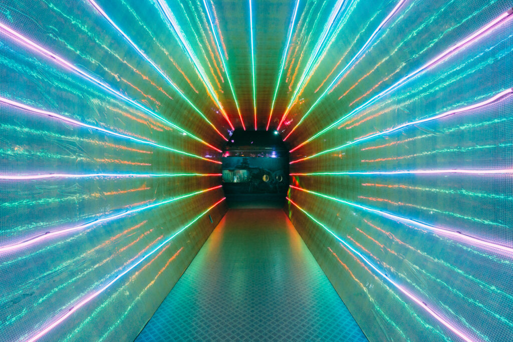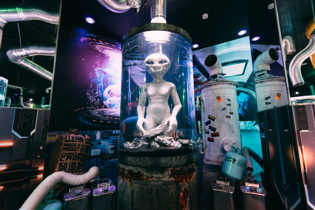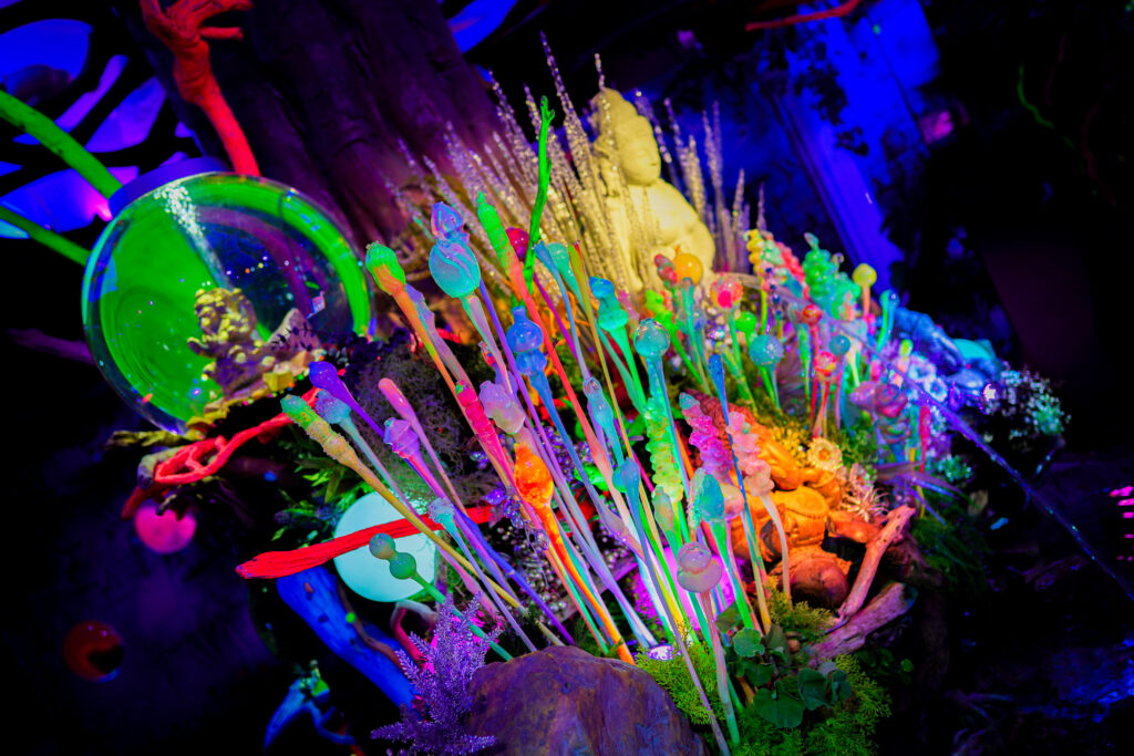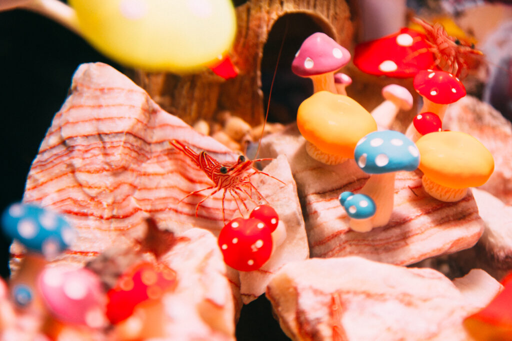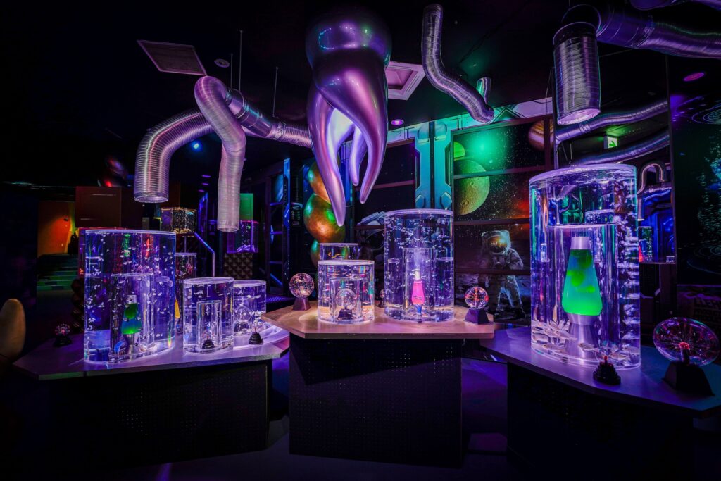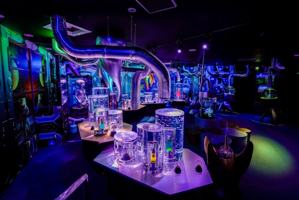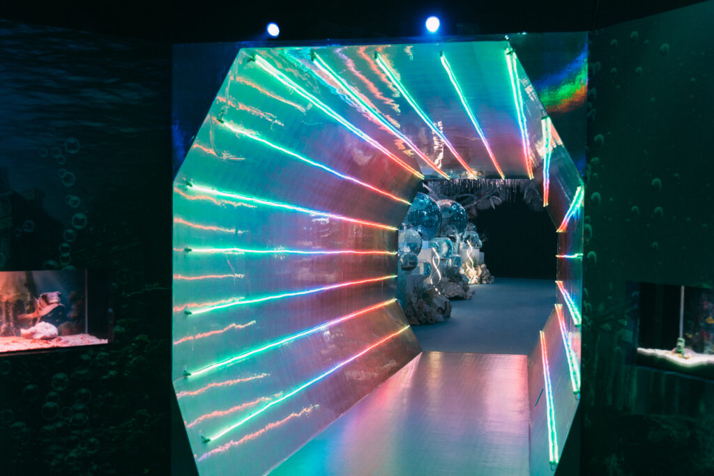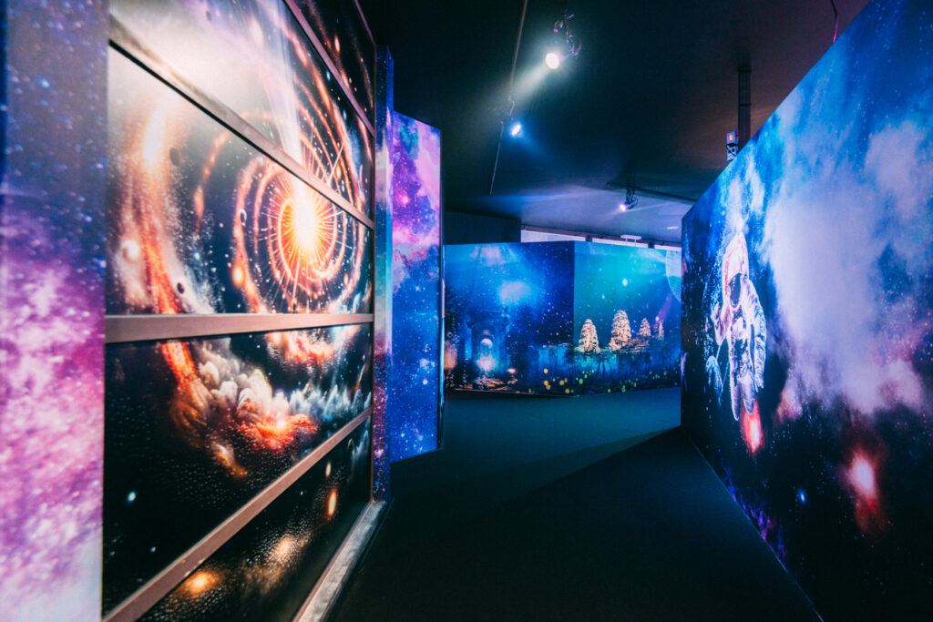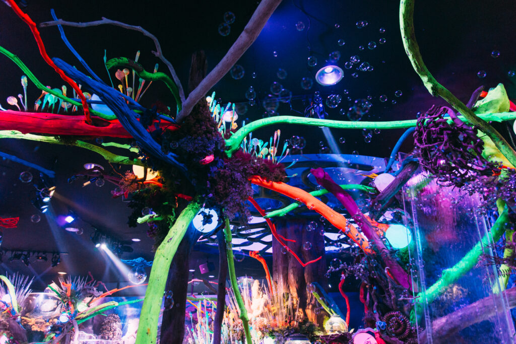 - 本施設は、“宇宙を旅するアクアリウム”をテーマにした没入型の展示で、来場者は“宇宙船の乗客”とねって全10エリアを巡り、、出発から帰還までのプロセスを体験します。光・音・映像・香りと、生きた水生生物を組み合わせることで、フィクションと現実が重なる独特の臨場感を生み出します。